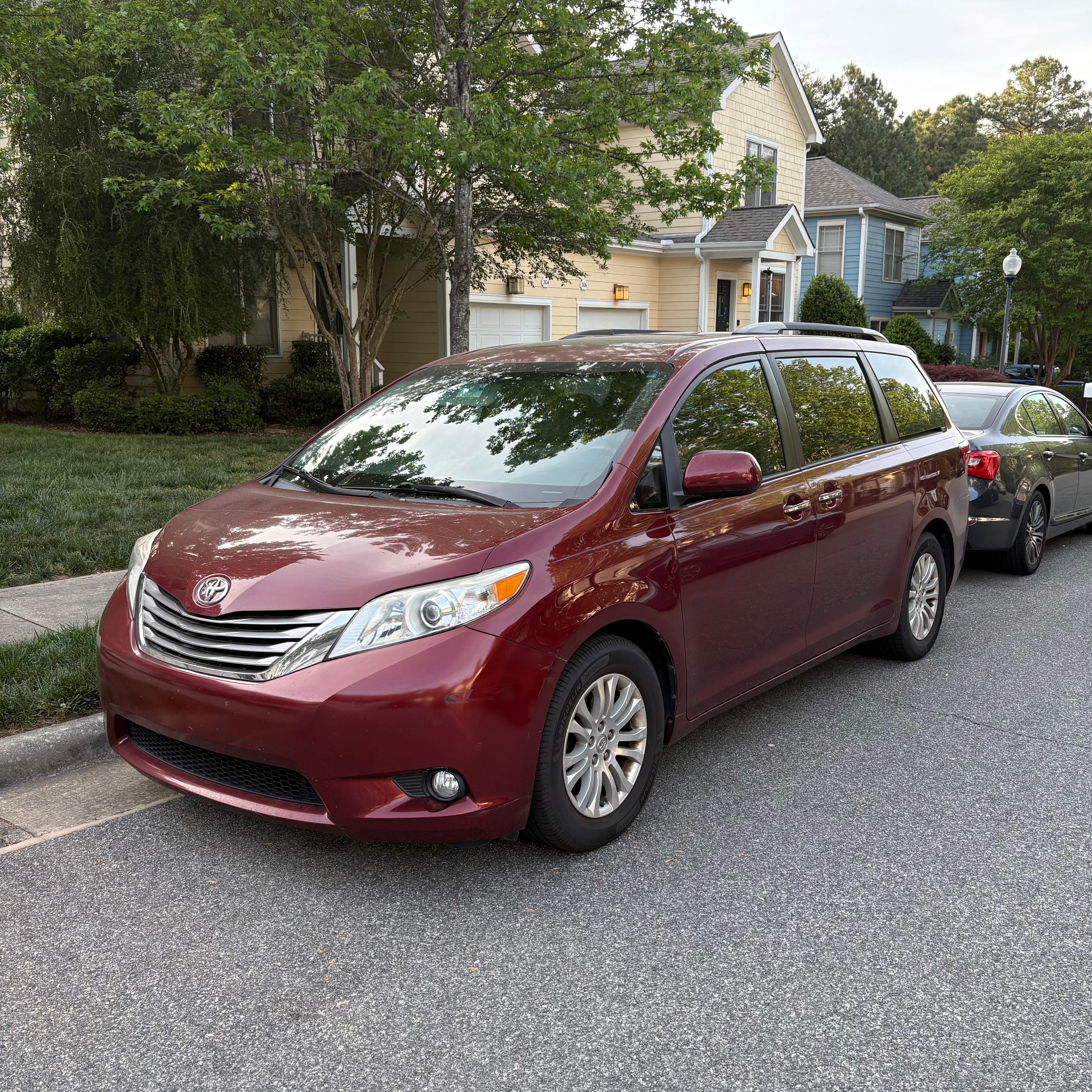 A few weeks after that fateful night, our wrecked van was replaced by a red Toyota Sienna. We still have it. It’s got dings and scrapes. We’re on windshield number three. It looks its age.